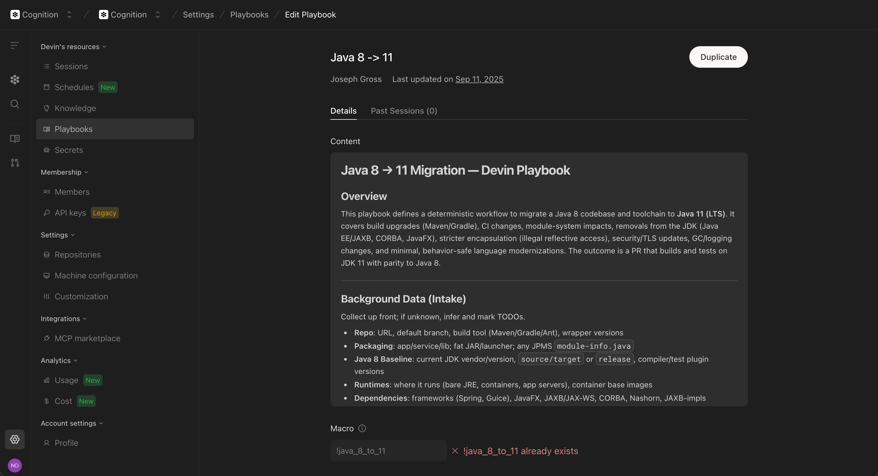 If you find yourself repeating the same instructions across multiple Devin sessions, you want a Playbook.