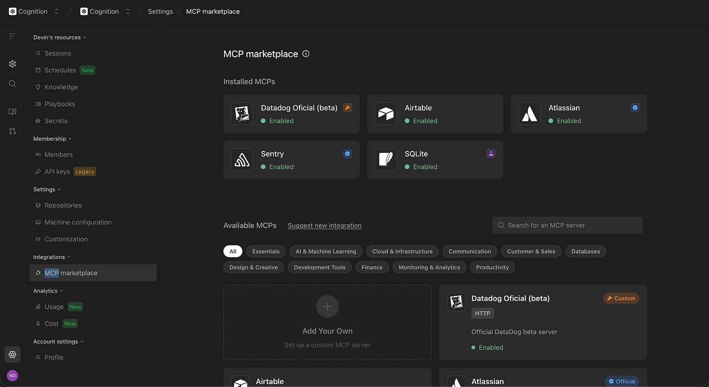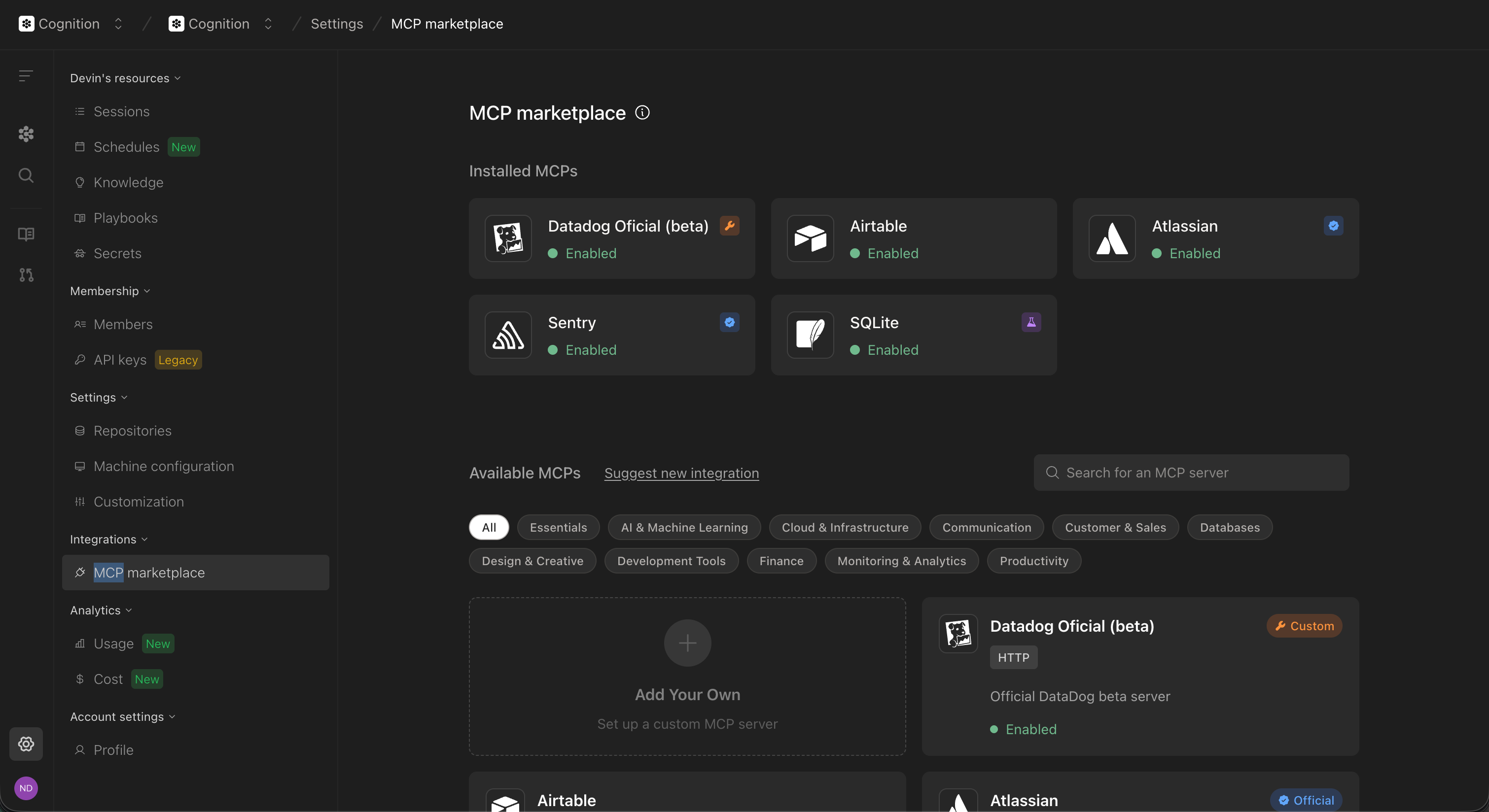 Many can be enabled with a single click - Vercel, Atlassian, Notion, Sentry, Neon, Asana, Jam, and more.